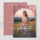 Celebrate in style with this glam, modern, and artistic graduation announcement—designed with a fun flare that's all about you. Featuring your favorite photo in an arch shape beneath a softly darkened and highlighted overlay, the front captures your glow and the moment. The background features a sparkling rose pink glitter graphic. Flip it over to find all your personalized details displayed on a rose pink background that’s effortlessly chic. It’s the perfect way to share your big news with flair! This design looks best with photos that include complimentary dusty pink, rose, cream or white backgrounds. Created by Simply Farmhouse Press.