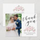 Modern Photo Pink Rose Floral Black Script Wedding Thank You Card