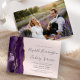 The left-hand edge of this elegant modern wedding invitation features a purple watercolor agate border trimmed with faux gold glitter. The customizable text combines charcoal gray handwriting, copperplate and italic fonts on a blush pink background. Easily replace the sample image on the back with your own horizontal photo.