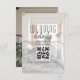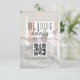 Simple, minimalist, modern black and white wedding details card, with QR code and custom photo.