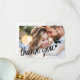 The front of this trendy and modern card is customizable with one of your favorite wedding photos and features the wording "Thank you" in black calligraphy font decorated with a tiny heart, your names, and your wedding date over a transparent white gradient overlay.
