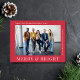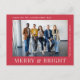 Modern red corporate Christmas holiday postcard featuring a photo of your business team and "Merry & Bright" in stylish white typography. Personalize your company name and customer/client thank you message in simple white typography. On the back, add an additional personalized message of gratitude.