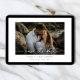 Announce your wedding in timeless style with this modern photo save the date card. Featuring your favorite engagement photo across the front, elegant calligraphy overlay, and serif details, this design blends romance with editorial sophistication. The back includes space for multiple photos plus a built-in QR code that directs guests to your wedding website for easy RSVP and details. Perfect for couples who want a clean, minimalist announcement that’s both personal and functional.