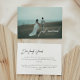 Modern Photo Script 'Just Married' Wedding Announcement. Announce your elopement to family and friends with this elegant, customizable wedding card. Designed with beautiful script lettering on the front and back, personalize with your names, a favorite wedding photo, and a message to all your loved ones on the back.