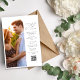 You can pick to download your custom Modern Photo Script Qr Code Wedding Invitation in any of the following 4 file types: PNG, JPG, Standard PDF, and Print PDF. These 4 file formats have been selected so they cover all your inviting needs. PNG and JPG are great for sending your invitations online. All of these file formats are great if you want to print your invitations yourself. However, having unlimited downloads allows you to download all four formats for maximum versatility. You can even apply your digital download design to other popular products on Zazzle.