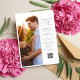 Yes, you can print on the back of your invitation for free! Most designs already have a corresponding design on the back that can be personalized using the Design Tool and going to Layers. This is a great way to communicate more information or further personalize your Modern Photo Script Qr Code Wedding Invitation. The option is really up to you.