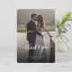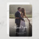 A great and thoughtful way to thank your friends, family, and coworkers who graced you their presence on your your wedding day with this modern photo thank you cards with script hand lettered "thank you" and a love heart.