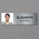 Modern name tag with your photo on a brushed silver faux metallic background. Add your name and title in simple typography.