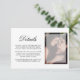 Modern wedding enclosure card with the word, "Details" in a chic script font and your favorite picture with a sheer overlay to the right. The backside is white and may be changed to any color you wish.
