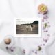 Modern and minimal photocard with "Save the Date" written in foil on upper left side of the card overlapping the photo