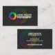 © Socialite Designs. Colorful shutter and watermark photography business card . The colorful design element, including the watermark, can be moved and resized. The background color is a dark gray. To customize all of the design elements, press the orange button "Customize it".