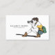 Modern Chic business cards for photographers feature hand drawn female photographer, name and tile on the front. Add more details on the back.