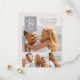 A custom modern wedding save the date card featuring four photos of the couple and a label