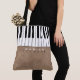 Keyboard and name on old brown background... a super stylish tote with a modern design to pleasure any pianist.
