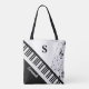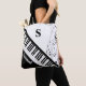 Modern Piano Music Notes Monogram Name Black White Tote Bag