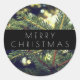 Modern Pine Tree Merry Christmas Typography Classic Round Sticker