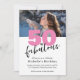 Pink and black 50 and Fabulous 50th Birthday Script party Invitation. Unique stylized design the words "50 and Fabulous" are set using popular typography. Template were set up for you to add your text. Personalize photo and name.