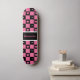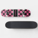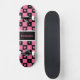 Modern Pink and Black Checkered Hearts With Name Skateboard Deck