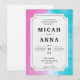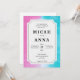 Plain white envelopes are included with paper invitations and will come to fit the invitation size you select. If you don’t need the envelopes, you may choose to not receive them by selecting the dropdown below "Envelopes" and choosing "None." If you’d like to have a design on your envelopes, you can browse all of these available envelopes to find the design that complements your Modern Pink And Blue Wedding Invitation.