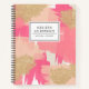 Feminine and trendy custom notebook featuring a pink brush pattern with gold glitter accents. Personalize by adding your name or short phrase. This modern abstract notebook will be perfect as a personalized gift. Matching items are available.