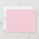 Sweet and whimsical baby shower thank you notes feature "Thanks!" text and an adorable newborn baby elephant calf with heart shaped splashes, with space for your handwritten message. The design includes a border pattern of diagonal stripes, polka dots on the back, and a baby girl color scheme of light pink, gray, and white.