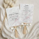 These fans were exactly as pictured. The quality is great. Perfect favor for a wedding!...I will make assembly a little easier by using a hot glue gun and finish them off with a ribbon. Beautifully printed. Crisp and clear text.