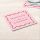 Modern Pink and Red Wavy Frame Wedding Square Paper Coaster