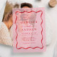 Introducing our Modern Pink and Red Wavy Frame vellum wedding invitation, where boho style and retro charm unite in a perfect celebration of love. The bold red lettering dances across the soft pink sheer vellum background, framed by a vintage-inspired wavy design that brings a nostalgic yet modern elegance to your special day. Personalize this whimsical invitation with your names and wedding details for a unique touch that reflects your love story. Ideal for couples looking for a fun, yet sophisticated design, this vellum wedding invitation sets the perfect tone for a memorable celebration.