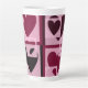 This custom latte mug embodies both charm and sophistication, this piece showcases hearts in a spectrum of pink shades, ranging from soft pastel carnation to deep wine red. These hues are meticulously arranged in a playful yet elegant modern geometric pattern, creating a visually stunning effect.