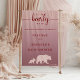 Set the tone for your baby shower with this We Can Bearly Wait welcome poster. Designed with a pink ombré backdrop and adorable woodland bear silhouettes, it’s perfect for greeting guests, decorating entryways, or displaying near the dessert or gift table at your rustic celebration.
