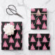 Modern Pink Black Christmas Tree Pattern Wrapping Paper Sheets