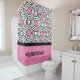 Decorate your dorm room with this fun shower curtain featuring a pink and black circle pattern with personalized hashtag text and a customizable color palette. This design is bold and modern, and it will make a great addition to a dorm bathroom. To change the color scheme, click “Personalize,” modify the hashtag text, click “Edit Using Design Tool,” click to select the pink elements, click “Fill Color,” select desired color, then click “Done.” If you need help changing the color, contact Zazzle Support at https://help.zazzle.com