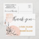 Modern Pink & Black Flower Gold Dots Wedding Postcard