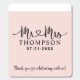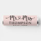 A bold and feminine wedding mint favor showcasing "Mr and Mrs" in decorative heart script calligraphy with the couple's surname as a striking monogram centerpiece. Crisp black text on a soft pink background delivers a chic, high-contrast pairing. Customize the names and wedding date for a stylish reception favor. All text is fully editable.