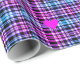 Modern pink blue black plaid pattern, pink hearts wrapping paper