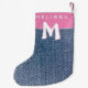 Modern Pink Blue Denim Jeans Monogram Name Kids Small Christmas Stocking