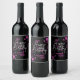 A modern, stylish and glamorous birthday wine label. This design features a vibrant typography "Happy Birthday" with pink gradient bokeh on a black background. Personalize and add your party details.