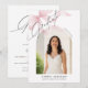 Celebrate your graduate in style with this elegant two‑sided graduation party invitation. The front features a watercolor pink ribbon illustration paired with graceful script lettering and a curved “Class of 2028” detail for a feminine, modern touch. Bold uppercase text highlights your graduate’s name, creating a beautiful focal point. The back of the invitation continues the clean, minimalist aesthetic with well‑organized event details, making it easy for guests to find the date, time, location, and RSVP information. A perfect blend of charm and sophistication, this design sets the tone for a memorable celebration.