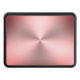 This trailer hitch cover has a brushed metal look. The design is pink and has a radial pattern.