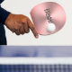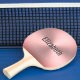 Gray display text is in the center of this pink ping pong paddle. You edit the text to show the desired name. The brushed metal design is artwork.