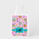 Modern Pink Butterfly Monogram Custom Reusuable Grocery Bag