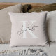 Custom-designed monogram pillow featuring modern hand script monogram with personalized initial and name.