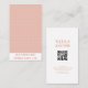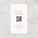 Business card design with a pink checkered pattern and a clean, minimal layout, featuring a QR code for direct access to a website or portfolio. Suitable for handmade clothing businesses, boutique brands, or creative professionals.