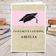 Modern Pink Congratulations Rustic Graduation Card with a Graduate Name. Graduation card with graduation cap, text Congratulations and a name of the graduate on the front side - personalize with your name. The text is on a beige rustic background and the cap is on pink. Personalize the text inside the card to suit your needs.