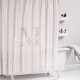 Custom-designed shower curtain featuring personalized family name monogram design.