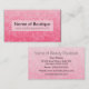 A modern pink fashion boutique business card with a soft, chic glitter-like pattern background. Personalize this girly and stylish pink business card by adding the name of your fashion salon and website. Flat printed image, NOT actual glitter.