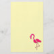 Modern art stationery design of a pink flamningo. This simple art modern design is on a lemon yellow background to denote simplicity, purity and beauty.