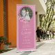 Modern Pink Flower Wreath Bouquet Wedding Welcome Retractable Banner