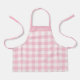 Great color and even though I ordered the kid size, it covers well enough to use during the holidays. I am not a big woman and prefer a shorter apron. I stand 5"6" and the length of the garment goes to mid-thigh. The tie straps fit well at my waist and even though there is no neck strap adjustment, the opening is plenty big enough. I am happy with the size and fit. I am sharing my apron with my 10 year old grandson, too! The color is vibrant and looks good, as shown on the website. The stitching looks strong and reinforced. Photographed is front side and back side of the apron, reinforced straps and coloring. My phone camera may not be the best at showing the details.