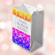 Modern Pink Girly Flower Floral Pattern Birthday Gift Bag. A floral pattern with white simple daisy flowers on a rainbow background. You can change the text Happy birthday and add your name.